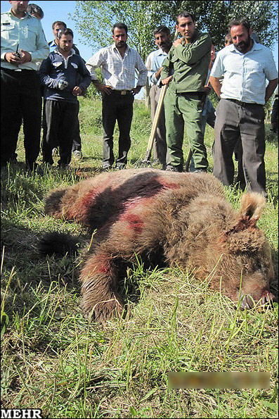 خرس قهوهای که به دلیل تحریک اهالی روستاهای اطراف سراب با مردم درگیر و توسط ماموران محاصره شده بود، با وجود اعزام اکیپ ویژه سازمان محیط زیست برای بیهوش کردن و بازگرداندن آن به دامان طبیعت، توسط شکارچیان خودسر کشته شد.